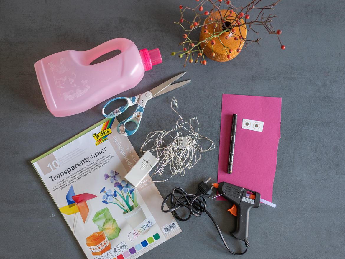 Mein Tipp: Das Kleben des Transparentpapiers ist wirklich etwas tricky. Nehmt euch dafür Zeit und arbeitet vorsichtig. Wenn ihr Heißkleber verwendet: Seid erstens vorsichtig, wenn Kinder in der Nähe sind. Und achtet zweitens darauf, dass möglichst keine Klebestellen sichtbar bleiben. Aber falls doch: Egal – es muss ja nicht alles perfekt sein!
